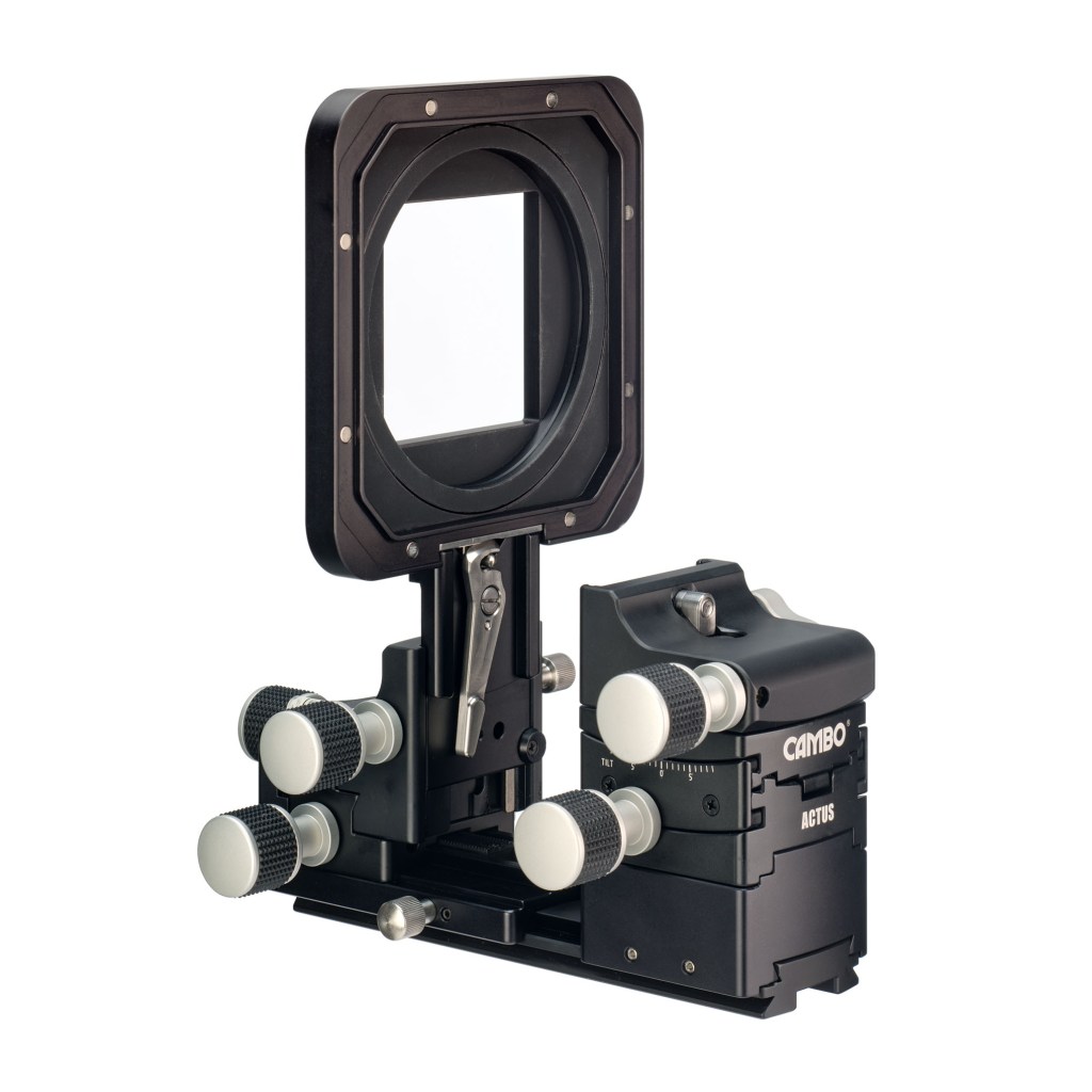 Here the Actus-G990D is shown with an IQ4-150 digital back. The Rodenstock lens has a Phase One X-Shutter. The rear frame is detachable and can be replaced by a bayonet holder if needed. Cambo offers one for virtually any camera. This version of the Actus is the platform that accepts every sensor, from M43 to Phase One IQ4.